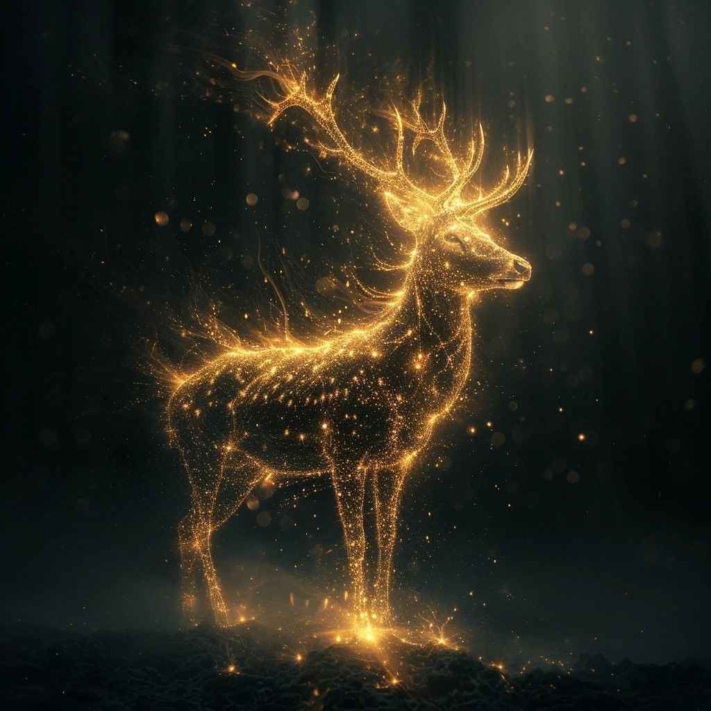 The intelligent eyes of the cavalyn stallion tied to the wagon focused on her, and she placed one finger against her lips. The beast shifted, and the glow of his iridescent hooves lingered in the moss for a heartbeat before fading, as if the ground needed a moment to forget it had been touched. His silver coat glittered like moonlit frost and prisms of violet light refracted through the curve of his crystalline antlers.